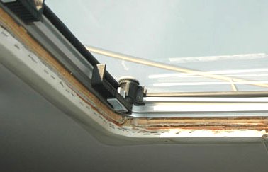 If after removing the existing liner, the structural elements between the coach-roof and deck are exposed (see left), a liner will be required. The OceanAir liner (see right) attaches to the Surface SkyScreen and protrudes into the lower groove of your hatch. See price list for cost of SFSS and liners.
